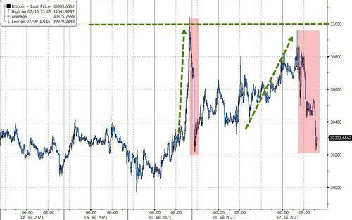比特币在CPI数据后上逼3.1万美元,随后转跌 黄金涨超1%至近四周最高,白银涨4%,工业金属大涨,伦铜涨超2%,镍涨近5%