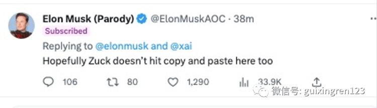 这一波操作,吊市场胃口和为Twitter引流双管齐下,不得不说马斯克“地表最强营销大师”的称号真不是浪得虚名。在宣布成立xAI之后,有网友还冒充马斯克踩了一下最近正在Threads上春风得意的扎克伯格,阴阳怪气地说希望他这次不要再抄袭。