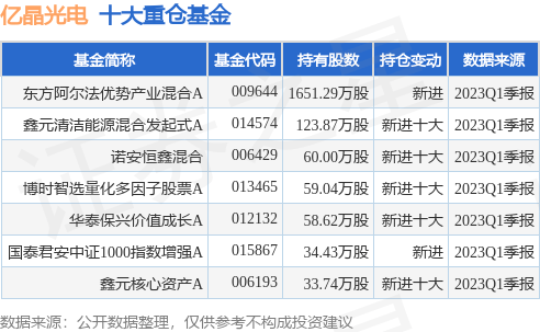 根据2023Q1季报公募基金重仓股数据,重仓该股的公募基金共7家,其中持有数量最多的公募基金为东方阿尔法优势产业混合A。东方阿尔法优势产业混合A目前规模为26.62亿元,最新净值1.3097(7月11日),较上一交易日上涨1.15%,近一年下跌30.31%。该公募基金现任基金经理为唐雷。唐雷在任的基金产品包括:东方阿尔法产业先锋混合A,管理时间为2021年7月21日至今,期间收益率为-44.24%;东方阿尔法兴科一年持有混合A,管理时间为2022年9月28日至今,期间收益率为-20.32%。