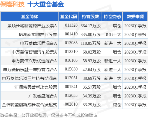 重仓保隆科技的前十大公募基金请见下表: