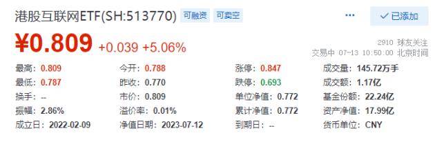 其中,港股互联网板块大爆发,领涨恒生股票主要指数。港股通互联网指数高开高走大涨4.76%,跟踪这一指数的港股互联网ETF(513770)高开高走,场内价格涨幅升至5.06%。
