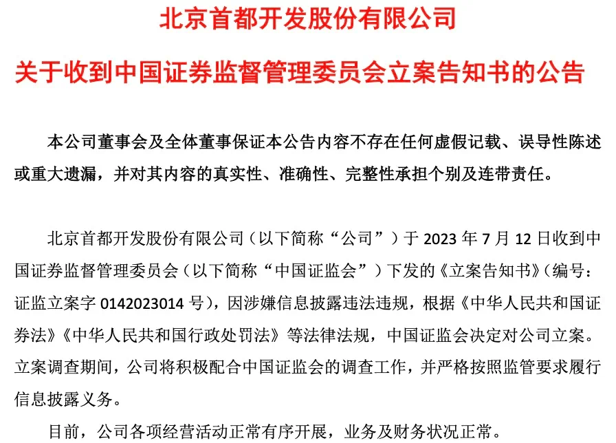 一晚上,9家公司被立案调查。7月12日晚间,中国重工、首开股份、兴源环境、上海凤凰、东方园林、太和水、ST华铁、*ST京蓝及*ST日海合计9家上市公司被证监会立案。