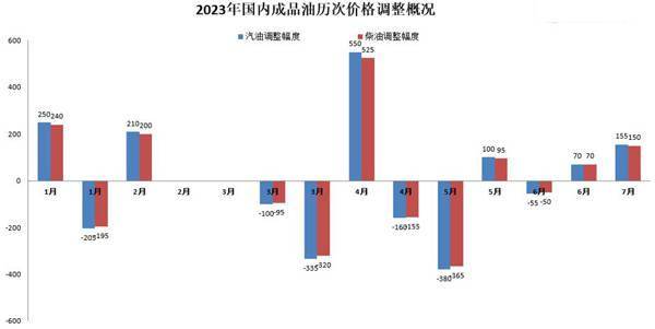 2023年国内成品油历次价格调整。数据来源:国家发改委网站