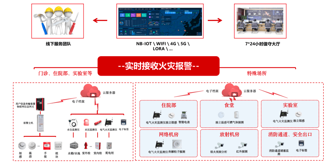 医院作为重要的民生机构,不仅肩负着守护人民生命健康的使命,还承担着保障医疗环境安全、维护医疗秩序稳定的责任和义务,但基于医院的特殊性和规模化发展,消防安全隐患日益突出,火灾事故高发、频发,国家政府各部门也积极出台政策推动智慧医疗的发展。新时代下,充分利用智能化、科技化手段进行火灾预防和管理显得尤为重要。