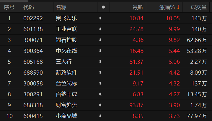 上证报中国证券网讯 7月13日,ChatGPT概念股走强,截至13:33,奥飞娱乐、工业富联涨停,福石控股涨近10%,中文在线、百纳千成等涨超4%。