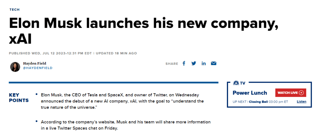 据报道,马斯克3月在内华达州成立了x.AI公司。此前,他在一些财务文件中将Twitter的名字更改为“X Corp”,但在xAI的网站上,该公司指出其与X Corp是两个独立的公司,并补充说其将“与Twitter、特斯拉和其他公司密切合作,以推动实现其使命。”