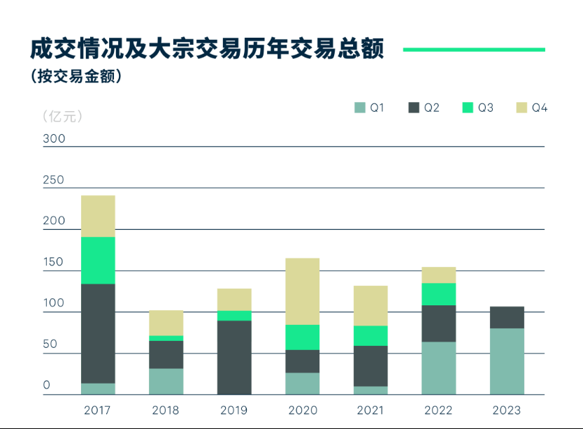 聚焦广州投资市场,2023年第二季度广州投资市场录得五宗成交,大宗交易总额26.7亿元人民币,上半年大宗交易累计总额106.3亿元,同比大致持平。