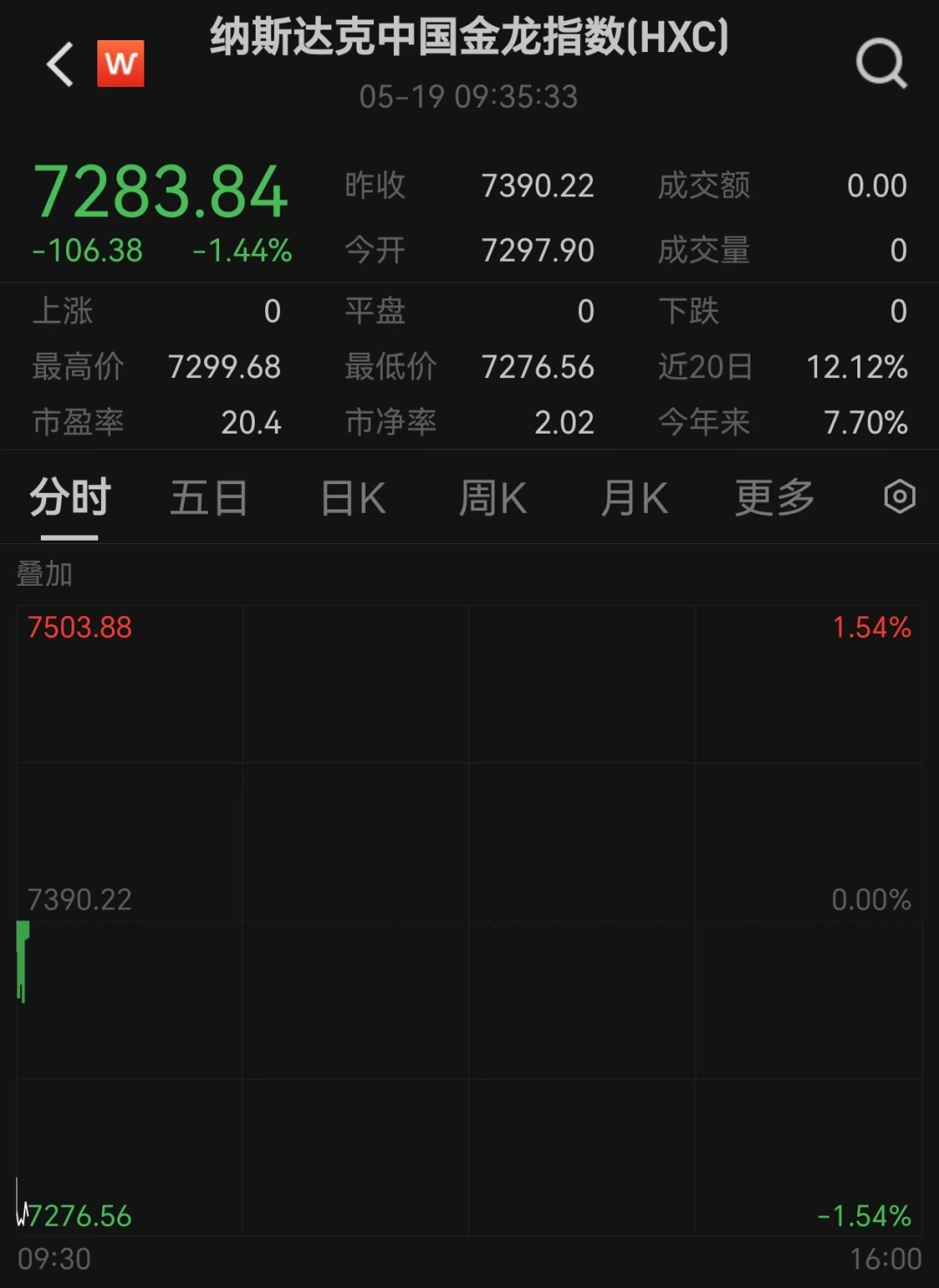 纳斯达克中国金龙指数盘初跌约1.4%。