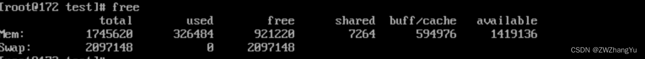 如上所示,当前计算机/dev/dm-1被用作交换分区,大小为2g,交换分区的大小可以通过free命令查看。