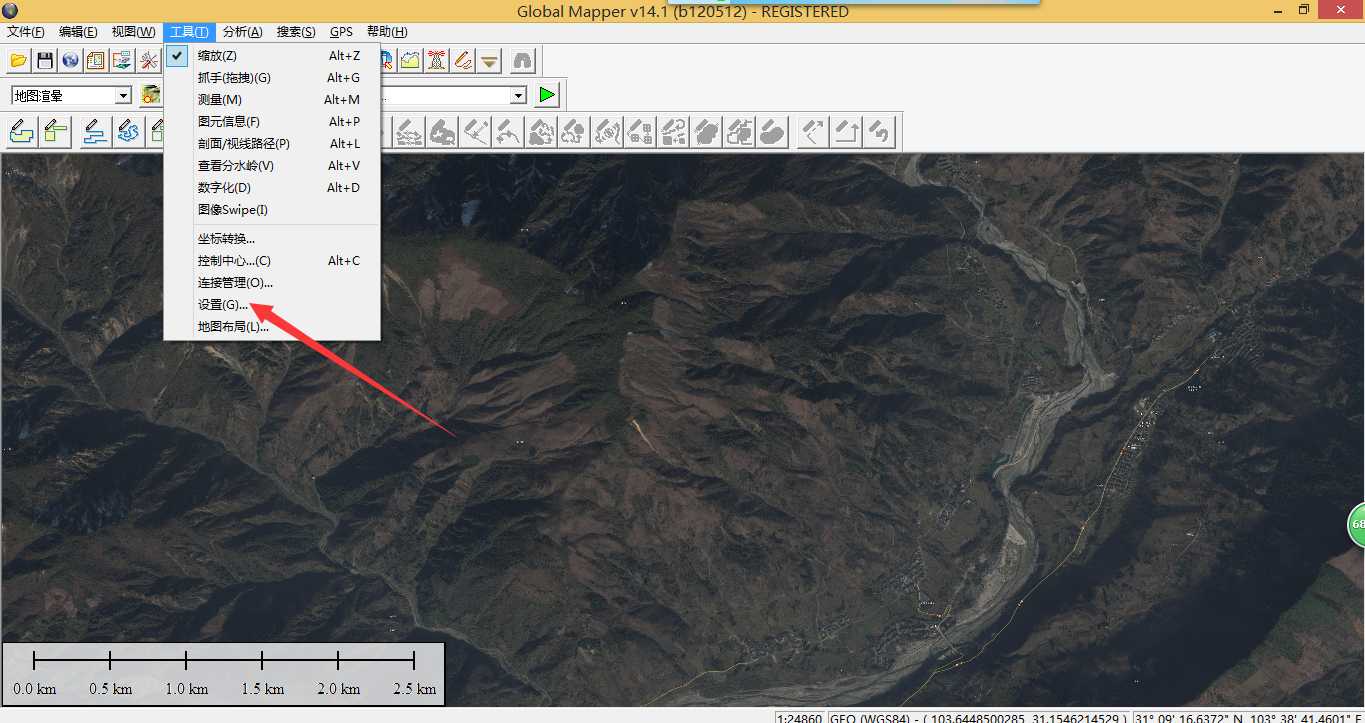 然后鼠标指到左边打开的卫星图像的文件名,点击【右键】,弹出属性框,选择【属性】,如下图: