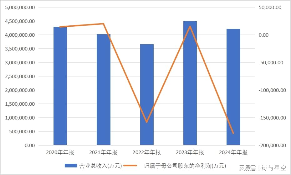 2024年江淮汽车的营业收入为421.16亿元,同比下降6.28%;归母净利润为亏损17.84亿元,同比由盈转亏。