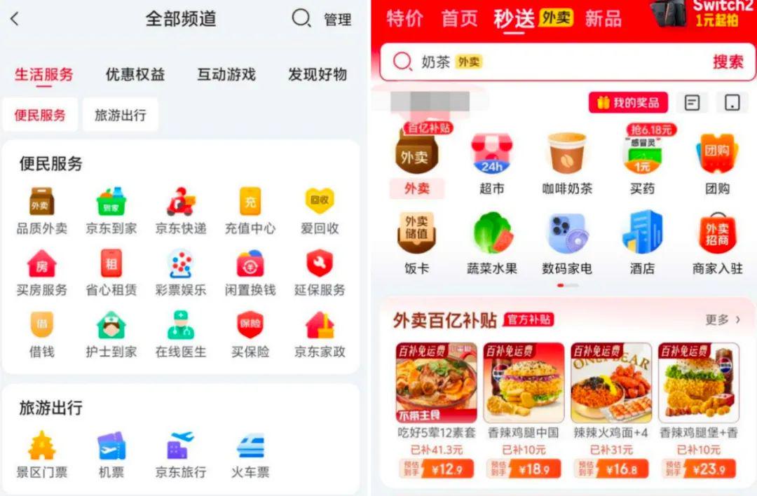 也正因此,京东似乎已不满足于App里那个不起眼的“旅游出行”入口,已将“酒店”直接置入了“秒送外卖”页面中,其All-in的决心可见一斑。