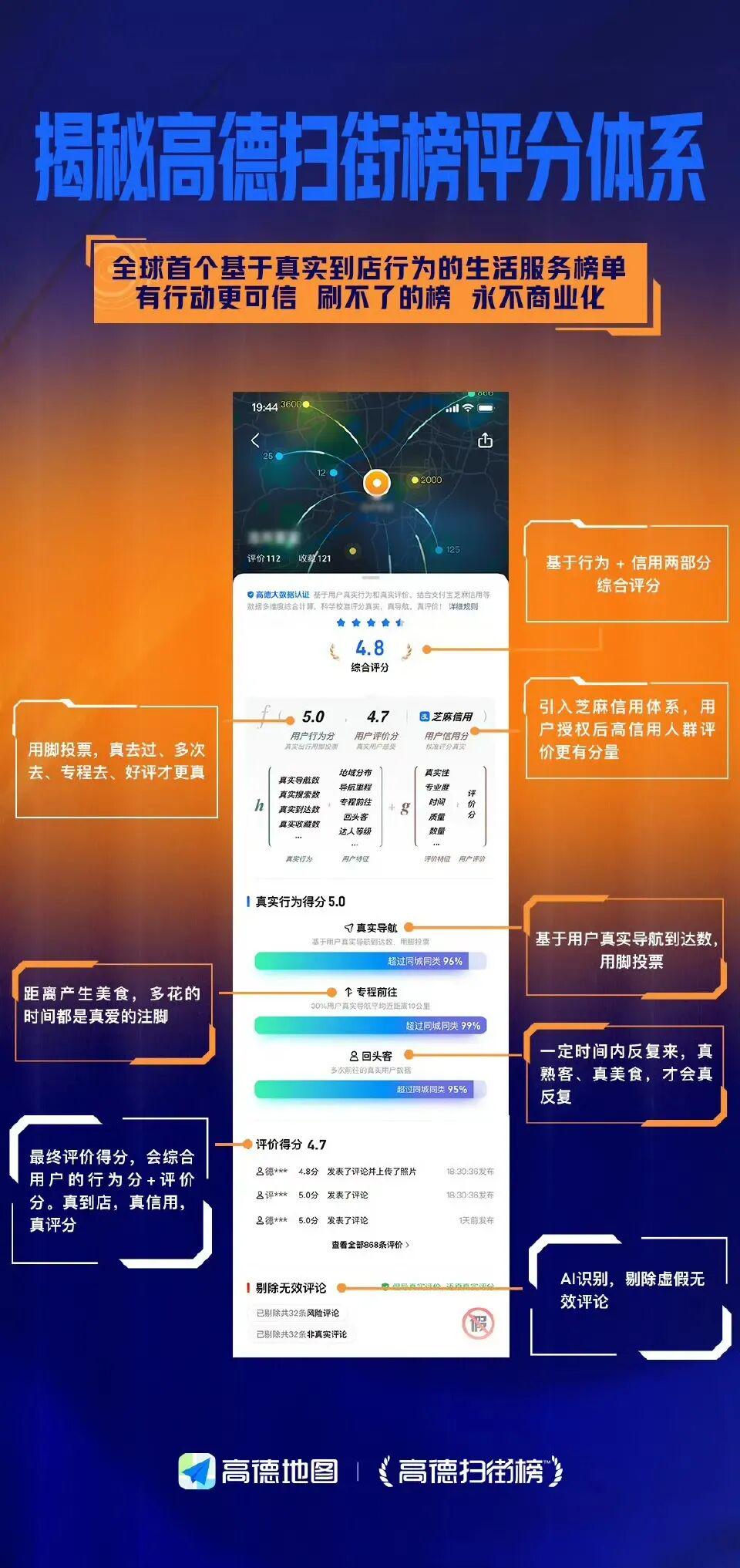高德地图CEO郭宁说:“高德扫街榜永不商业化,真实是榜单的核心生命力。”