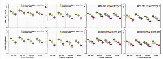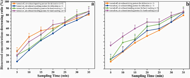2022年,中国地质大学(武汉)瓦吉德·阿里等学者通过对比试验发现,无论是否打开排风设施,蹲便器卫生间生物气溶胶浓度始终高于设置马桶的卫生间0.3—0.6倍。在排风关闭条件下,蹲便器排便姿势的初始浓度高达1571.26±15.45CFU/m³,而马桶仅为989.40±8.82CFU/m³;在排风开启条件下,蹲便器浓度仍有890.46 ± 7.13CFU/m³,明显高于马桶的715.90±4.73CFU/m³。