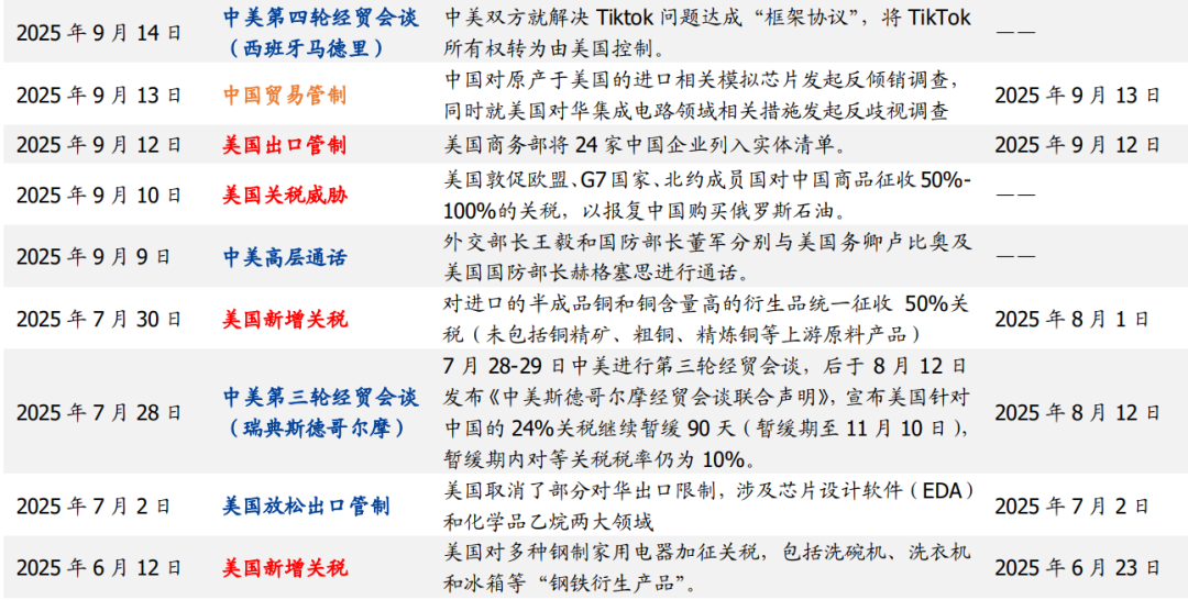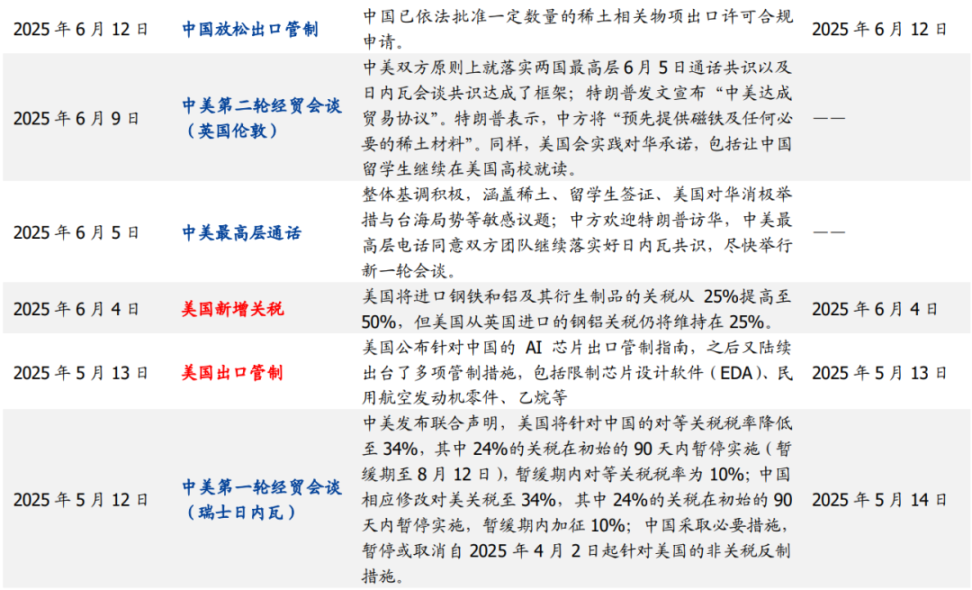 2、本轮中美冲突为何再升级?更可能是美国为10月底中美最高层会晤增加谈判筹码,叠加中国稀土反制的力度应是超出美国预期。一方面,历史复盘显示,美方惯于在谈判前夕主动“摩擦升温”以增加谈判筹码,形成“极限施压—舆论造势—会场压价”的三段式操作,如在6月伦敦会谈和9月马德里会谈前都曾新增出口管制、发起关税威胁、将中国企业加入实体清单等。另一方面,中方本次对稀土的出口反制,类似“美国的长臂管辖”,若后续没能缓和、美国再获得中国稀土的难度将明显增加。