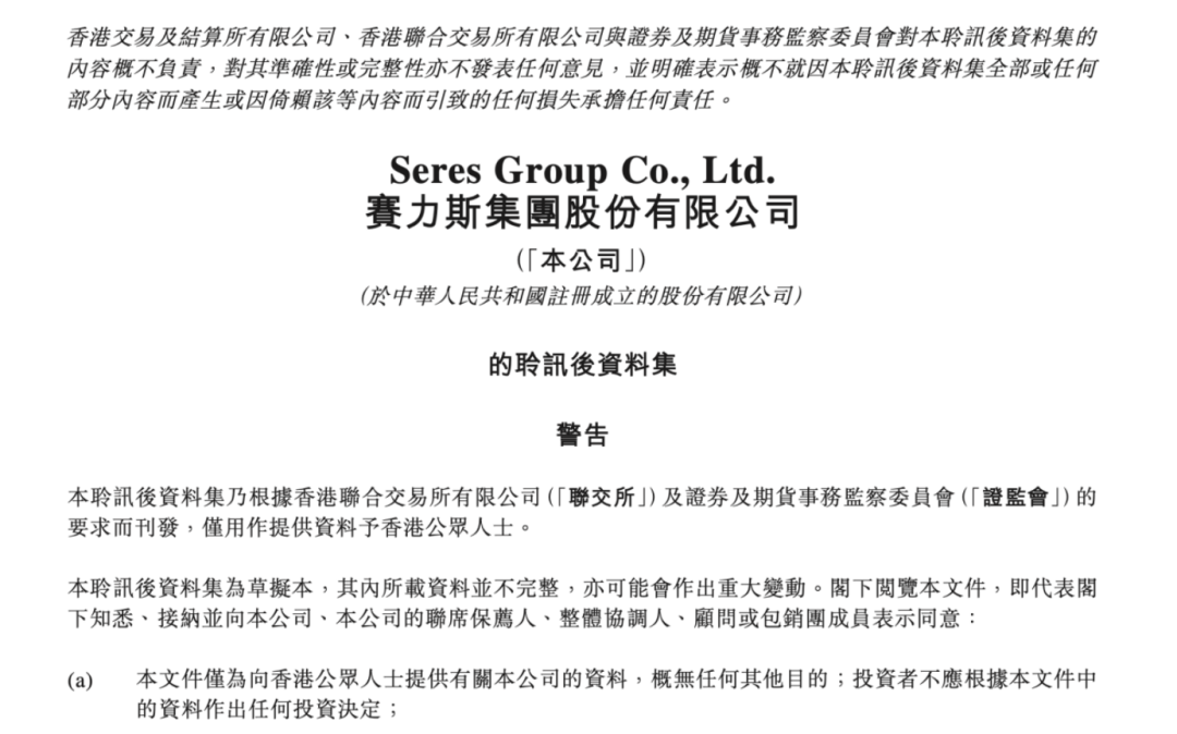 10月13日晚间,赛力斯通过港交所上市聆讯,标志着其赴港上市进程取得实质性进展。