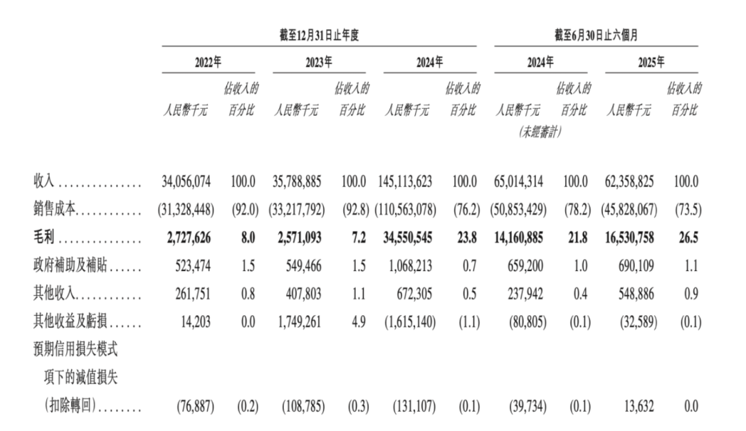 高毛利以及盈利能力改善,为赛力斯赴港上市提供了重要支撑。在经历连续四年累计亏损近百亿元后,公司于2024年实现净利润59.46亿元,成为全球第四家实现盈利的新能源车企。2025年上半年净利润增长进一步巩固了其盈利态势。
