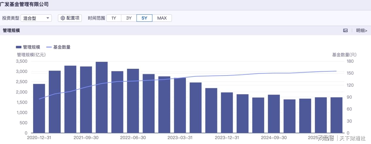广发基金旗下多名知名基金经理折戟,相伴相随的是,公司混合型产品规模出现大幅缩水,已从2021年末的约3483亿元,减至今年二季度末的1755亿元,三年多缩水了近一半。