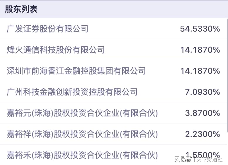 广发基金全称是广发基金管理有限公司,成立于2003年8月,广发证券为其控股股东,持股比例约55%。