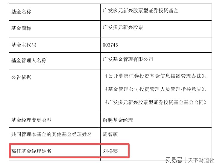 例如,近期,广发基金刘格菘因工作安排,卸任了广发多元新兴股票基金。