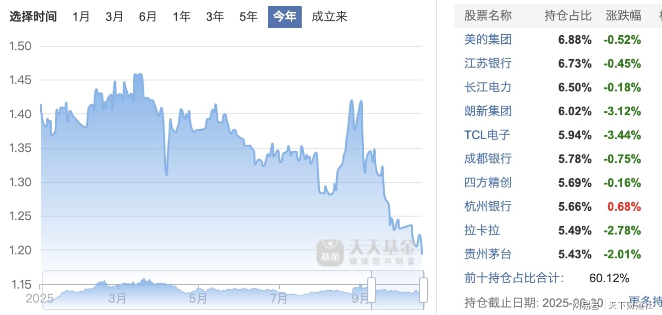 以跌幅最大的广发价值优势混合基金为例,其主要投资的是“优质蓝筹上市公司”,更偏向大盘价值股,而今年市场风向更偏向于AI、机器人等成长赛道。