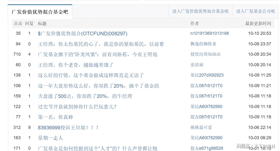 其中,表现最差的是广发价值优势混合基金,前三季度亏损超15%,与向暖的市场形成强烈的反差,让投资者凉意难消,难怪不少人在股吧里表达不满。
