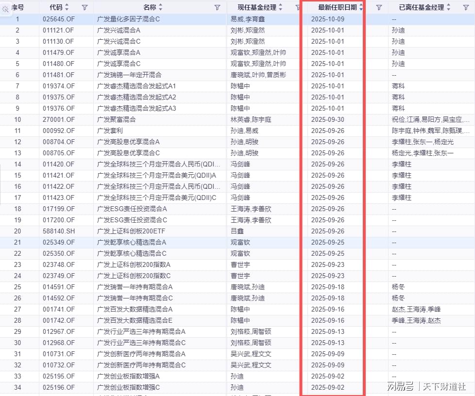 另外,今年9月以来,广发基金还对不少权益类基金经理进行大幅调整。