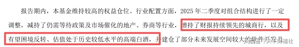 因一季度并未取得较好的业绩,王明旭进行了调仓,二季度增持了城商行、高端白酒等,而现实也没有根据他预料的方向走。