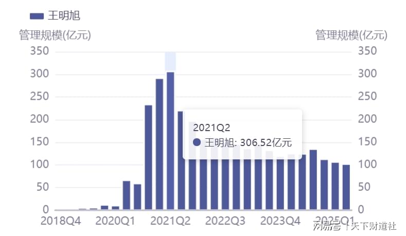 同花顺iFinD显示,王明旭管理规模最高时是在2021年二季度末,达到约307亿元,而截至今年二季度末,仅剩约102亿元,缩水近67%。