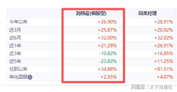 刘格菘2019年4月-2020年3月单独管理该只基金时,曾获得100%的超额收益,这是他时隔4年多的第一次卸任。