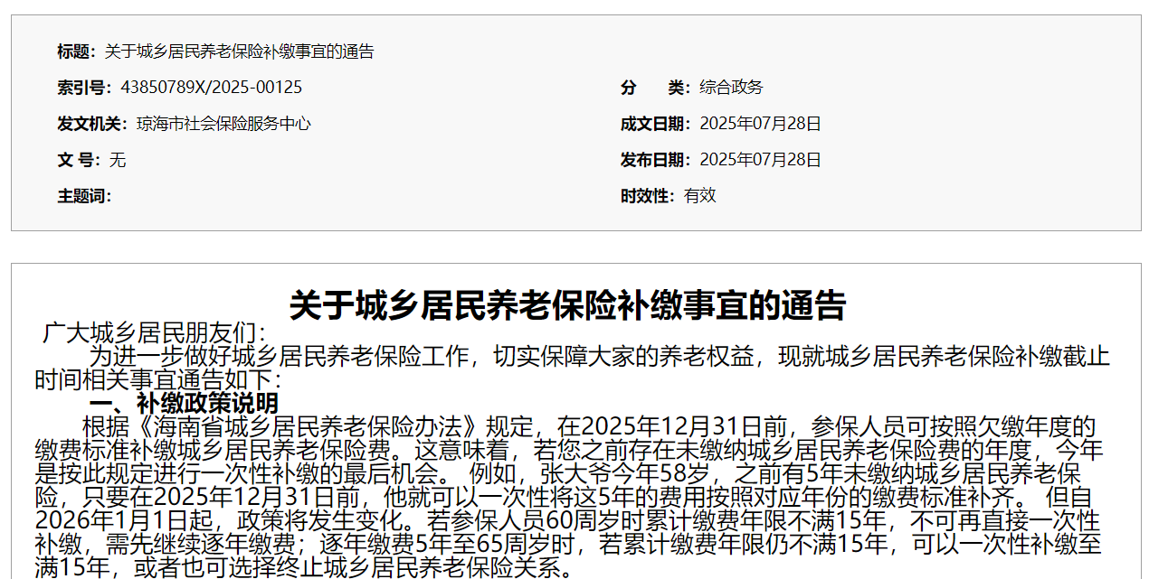 停止60周岁一次性补缴?居民养老没交够15年,还能退休吗? 2025年满60周岁一次性补缴 未满60岁可以一次性补缴15年吗