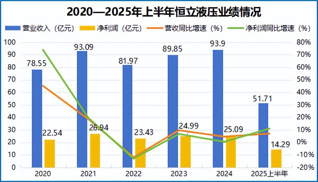 恒立液压也从中受益,直接看业绩:2025年上半年,公司实现营业收入51.71亿元,实现净利润14.29亿元,环比分别增长了13.47%和17.13%。