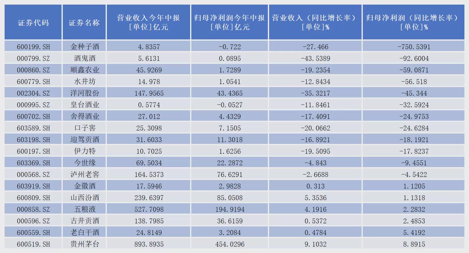 仅6家实现营收利润双增长,行业整体呈现“量减、收平、利降”态势。即使是茅台、五粮液等头部企业,也迎来近十年同期首次个位数增长。