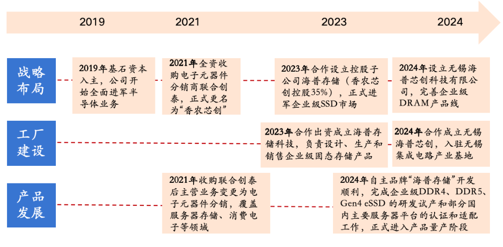 一切的转变,始于2019年:这一年,私募机构基石资本成为控股股东,带领公司向半导体行业转型。两年后的2021年,公司以16亿元全资收购电子元器件分销商联合创泰,主营业务彻底转向半导体分销,并正式更名为“香农芯创”。