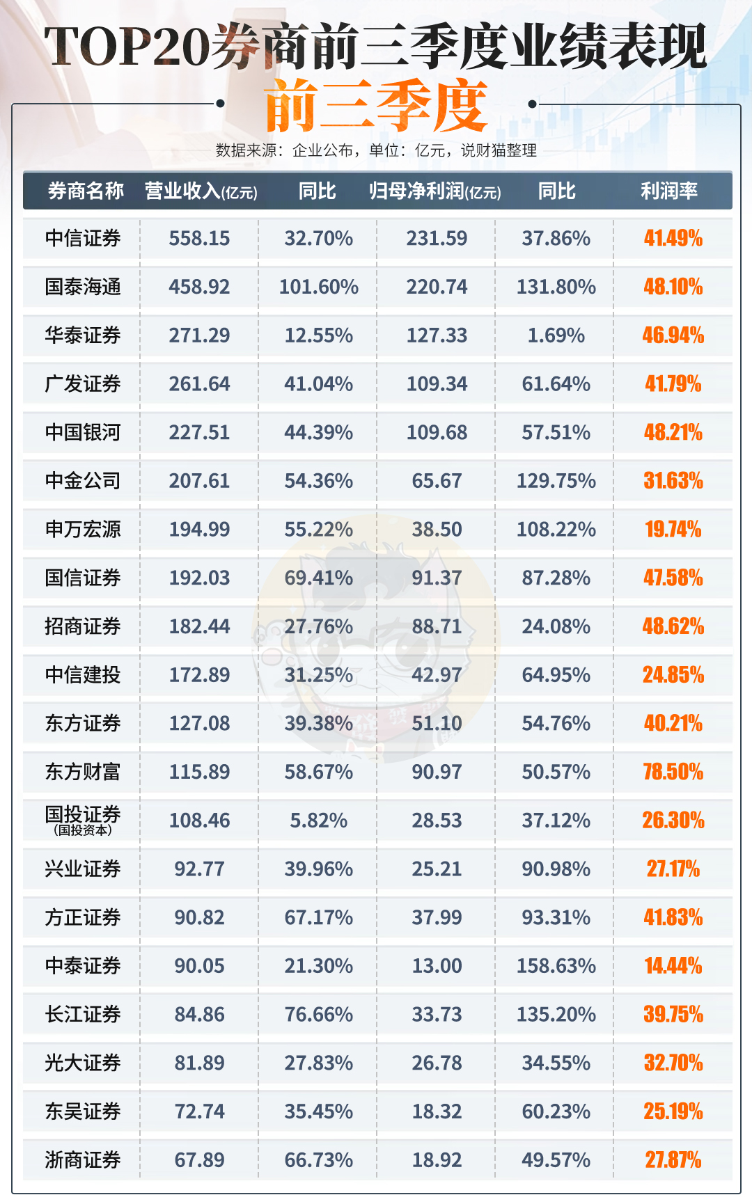三季度的爆发再加上前两个季度表现也不差,券商们前三季度的整体表现,基本都是业绩大爆发。