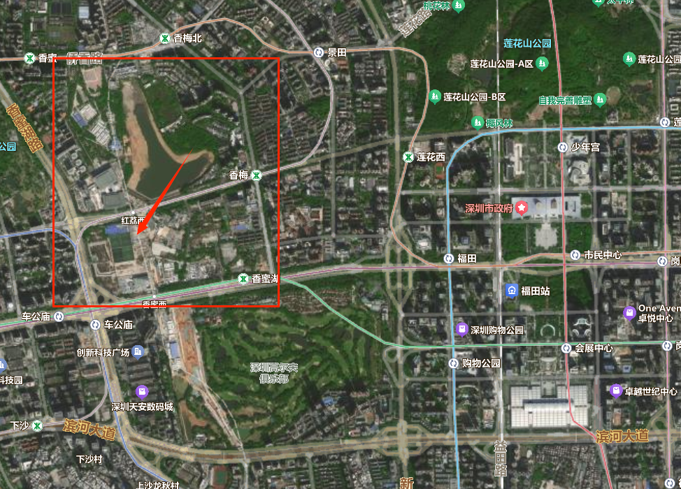 坊间一般猜测,会议将在深圳福田中心区旁边的香蜜湖新金融中心举行,也就是下图中红框部分,红色箭头所指是其核心建筑的部分。