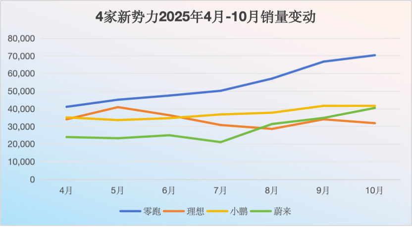 10月,零跑销量断层式领先“新势力”,在新能源排在零跑前面的只剩比亚迪、吉利银河、上汽五菱等大厂。这也是零跑8个月蝉联新势力“销冠”。