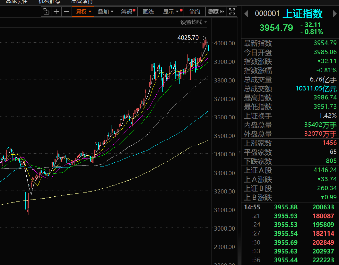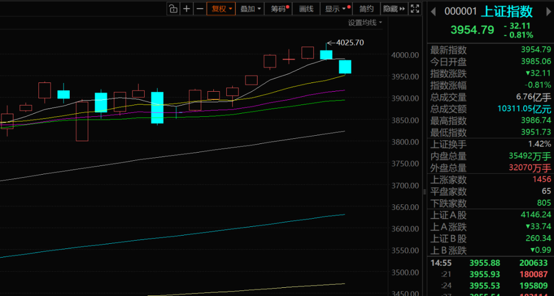 幅度确实不大,但也确实提前大盘一天去回调,刚上破4000点所有的蓝筹白马就开始下行了。