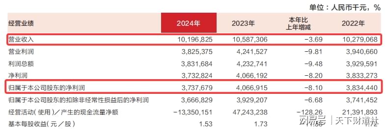 这延续了2024年的下行趋势——去年营收同比减少近4%,归母净利润减少8%。