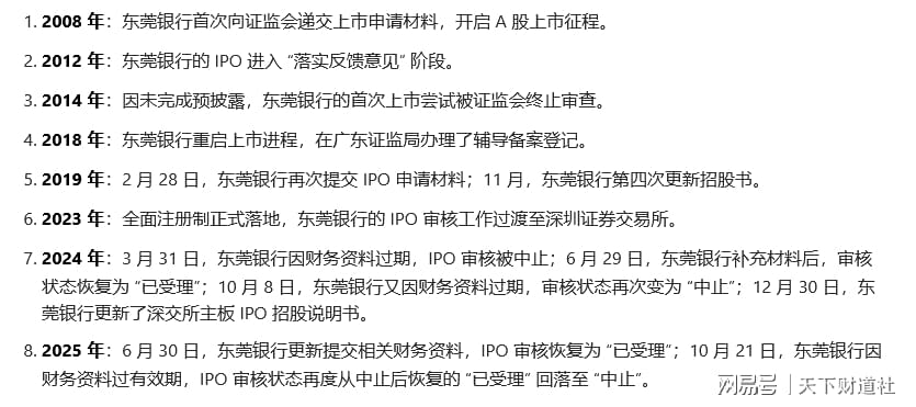 东莞银行申请IPO17年进程简况