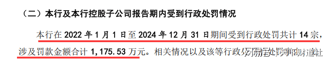 根据东莞银行最近一版招股书,报告期内,该行共受到14宗行政处罚,罚款总额达1170多万元,其中2024年一年内就发生4宗。