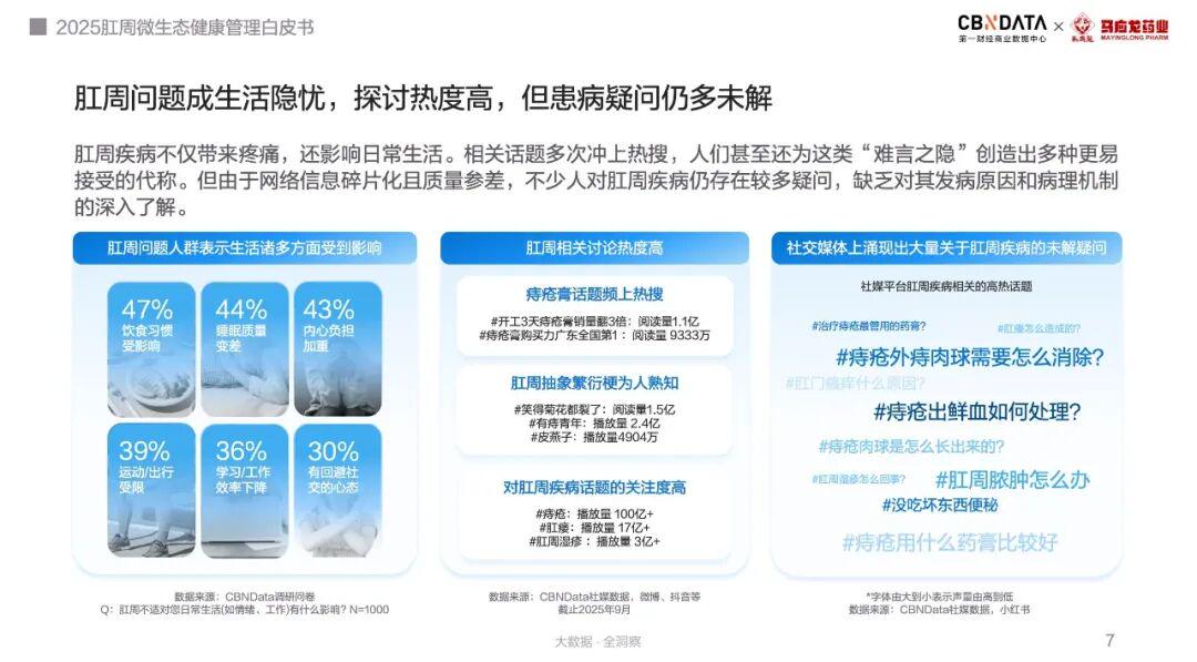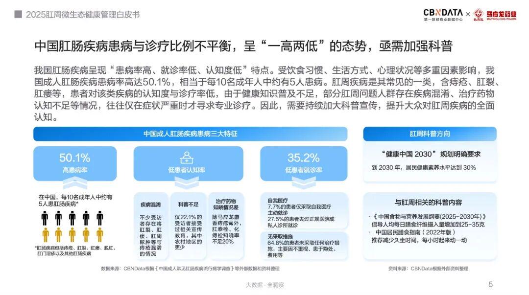 为此,马应龙药业与第一财经商业数据中心(CBNData)共同发布《2025肛周微生态健康管理白皮书》(下称“白皮书”),提出“肛周微生态”理念,旨在推动肛周健康知识的普及,助力公众告别模糊的经验认知与被动忍受,迈入以微生态平衡为核心的全周期健康管理新阶段。
