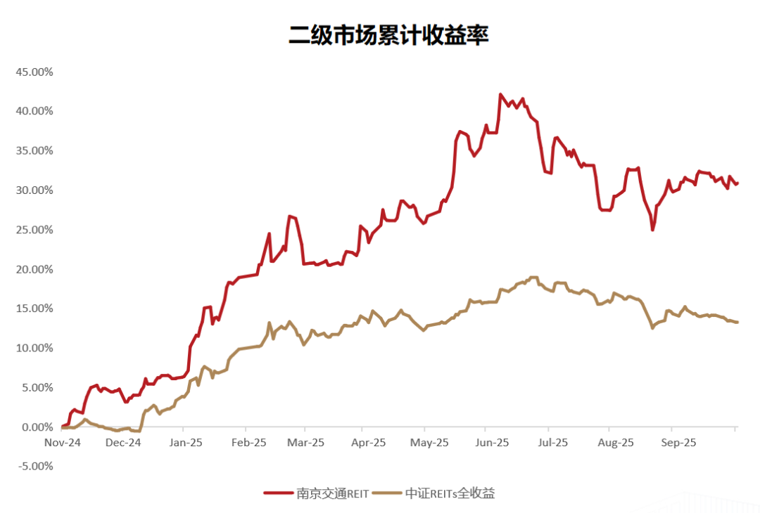 二级市场稳健显优势:截至2025年9月30日,产品上市以来二级市场涨幅为30.84%,本产品二级市场涨幅领先中证REITs全收益指数(13.18%),是投资者积极配置的优质标的,展现了市场对本产品经营能力对长期价值的认可。