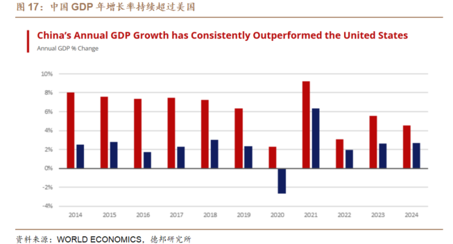 如今全球经济面临地缘政局与贸易摩擦的多重考验,中国经济虽也有下行压力,但其经济体量使其名义增量仍不可小觑。以2023―2024年为例,即便经济增速相较之前有所回落,中国折算为美元后的名义增量仍能达到数千亿美元级别,这样的量级数据虽会因汇率、基数不同而有所浮动,但趋势本身并不会轻易改变。