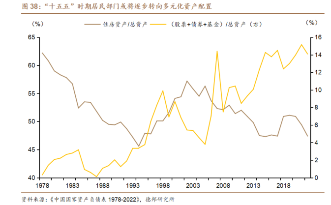 趋势十:资本市场成为家庭财富增长的重要途径。“十五五”时期预计我国将处在低通胀、低利率与流动性合理充裕的金融环境之中,政府与企业的债务负担相对可控,财政与金融政策更好协调发力。资本市场的功能重塑也将为财富结构转型提供坚实支撑,推动资本市场从“融资市场”向“投资市场”和“财富市场”转型,并深刻改变社会分配与创新机制,推动中国家庭财富结构从房地产主导,向以股票、债券和基金等金融资产为代表的资本市场主导转型。