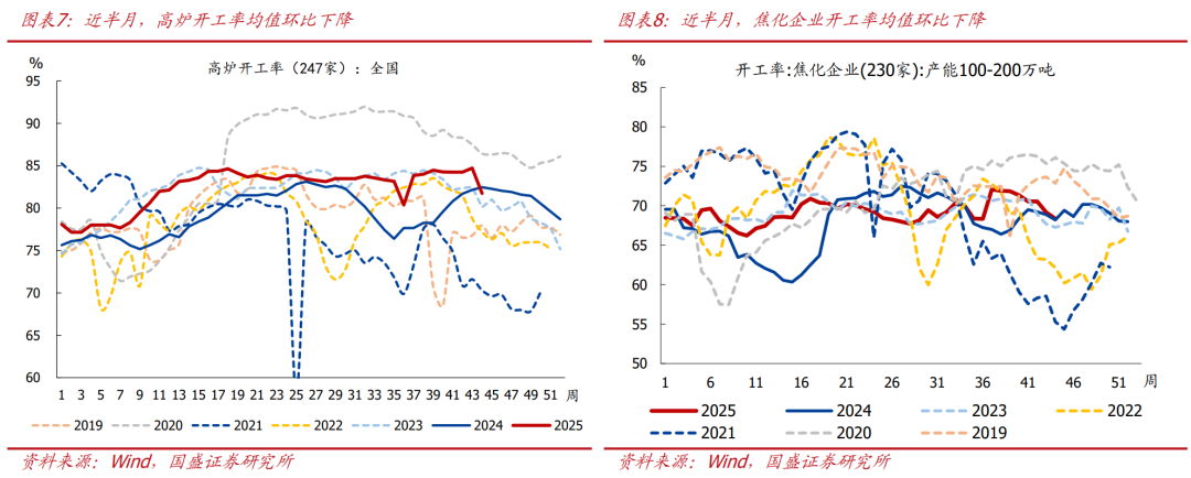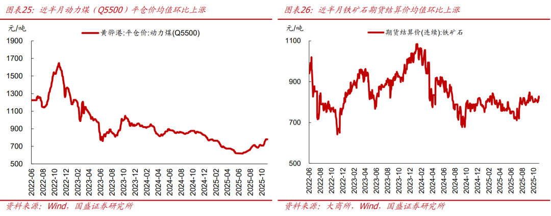 核心结论:近半月经济变化有三:一是反内卷继续推进,高炉、焦化企业开工率下降,煤炭、铁矿石、螺纹钢等大宗商品价格有所回升;二是10月地产销售环比和同比均走弱,为剔除去年“924新政”带来的高基数影响,两年复合同比增速显示,10月新房销售同比降16.3%(9月同比降15.2%),二手房销售同比降7.4%(9月同比增6.7%),也均有不同程度走弱;三是10月出口预计延续偏强,增速可能在6%左右。