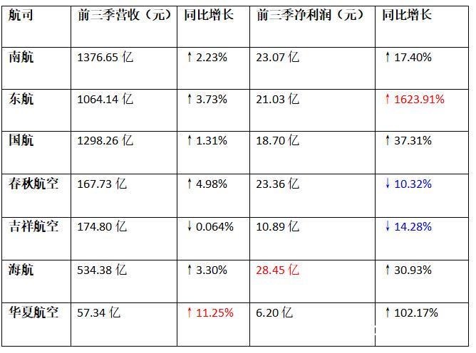 七家上市航司2025年前三季财报情况