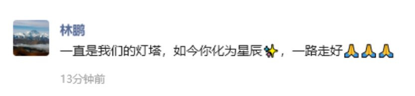 百亿私募和谐汇一的董事长兼总经理,前东方红资管副总经理兼公募权益投资部总经理林鹏发文哀悼:一直是我们的灯塔,如今你化为星辰,一路走好。