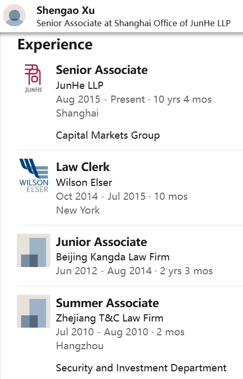 2015年8月他回到上海,正式入职君合,专注资本市场业务。过去十年间,他从普通律师成功晋升为合伙人。