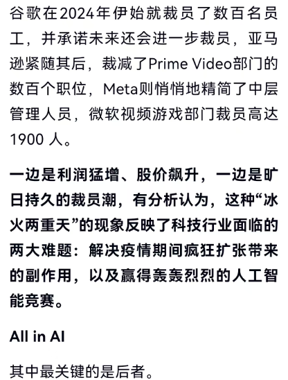 当然,支持者们会说当下人工智能已经替代了很多工作。但这真的是好事吗?从互联网舆论中我们可以发现,如今劝人去美国当程序员的比之前少了很多。准确的来说,从2022年底大语言模型热潮开始,美国程序员的整体就业环境就变得糟糕起来。有人可能会因此称赞人工智能的强大,但是更多的原因恐怕在于,当下的美股市场,只要你以人工智能之类的理由裁员,股价就能带来上升。